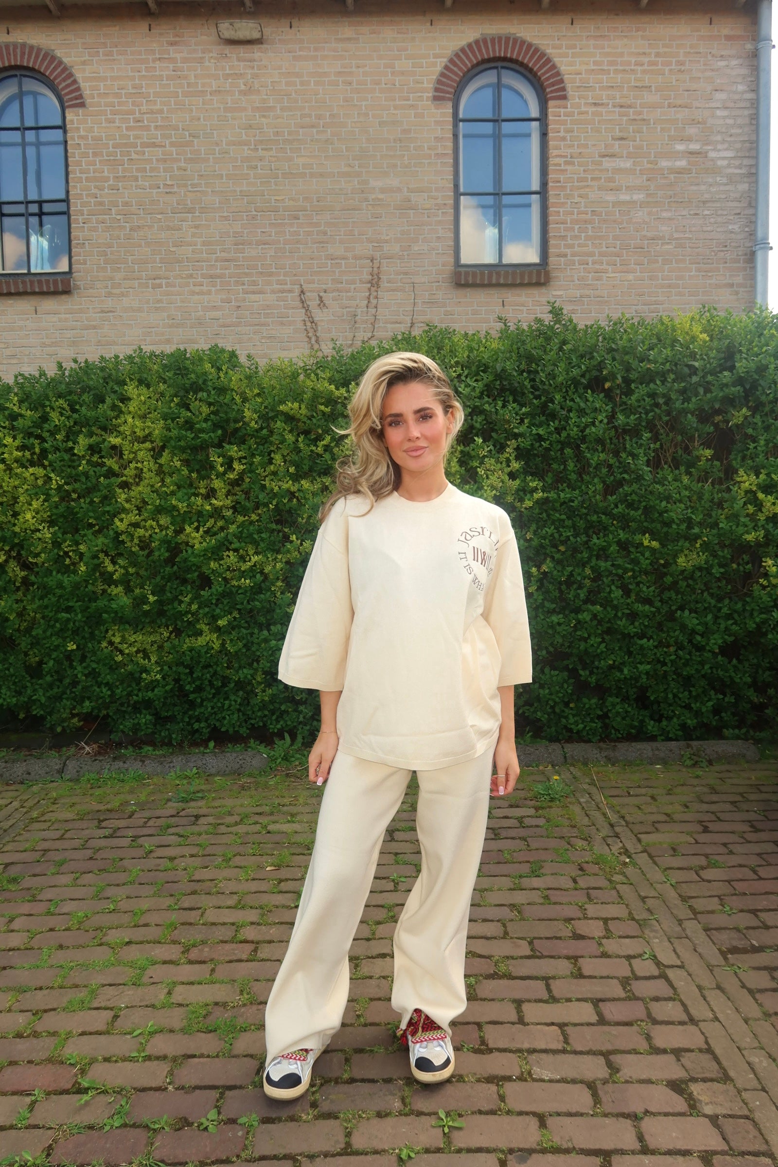 Co-ord Felice pants & Gigi top with logo - Ecru