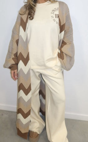 Luxe meets comfort in this knitted co-ord jogger set in ecru. Featuring a logo detail, this effortlessly chic ensemble takes loungewear to the next level — perfect for staying stylish at home or on the go.